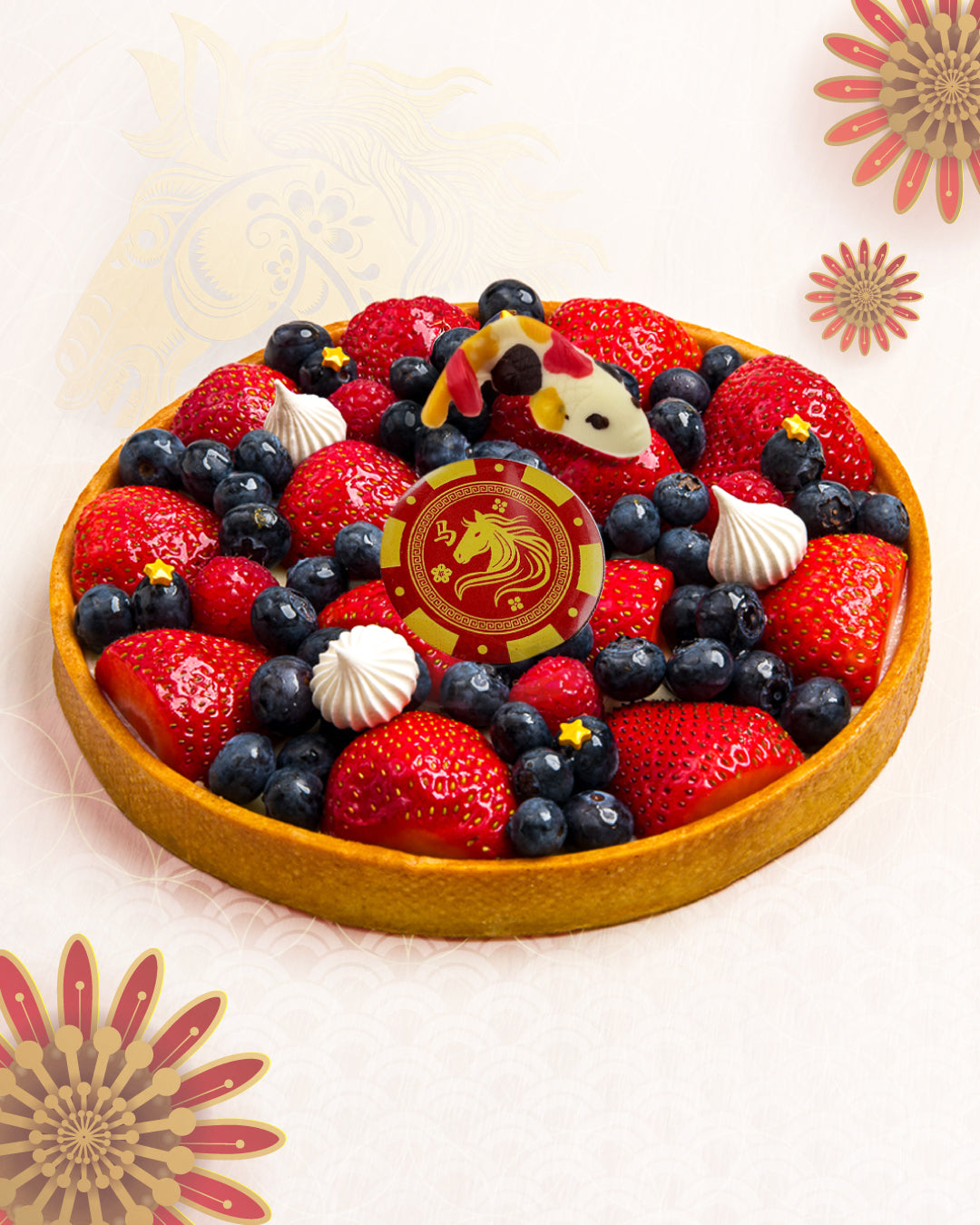 Welcome the Year of the Horse with our festive Mixed Berry Tart. A crisp buttery tart shell, filled with light vanilla cream and generously topped with fresh strawberries, blueberries, and raspberries for a vibrant balance of sweetness and freshness.